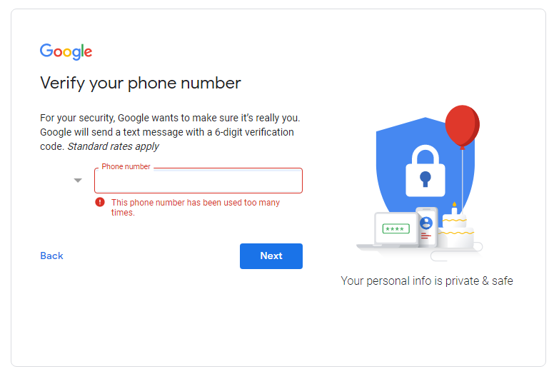 Dalam mendaftar akun perlu menyiapkan nomor telepon untuk melakukan verifikasi. Dalam melakukan verifikasi ini terkadang muncul suatu masalah di mana nomor telepon yang digunakan dinyatakan sudah terlalu sering digunakan untuk melakukan verifikasi tanpa sebab yang jelas. Hal tersebut terkadang muncul ketika membuat beberapa akun secara berulang dalam kurun waktu yang sama ataupun berbeda dengan menggunakan browser yang sama. Google dapat mendeteksi adanya hal yang tidak wajar dari cache browser.